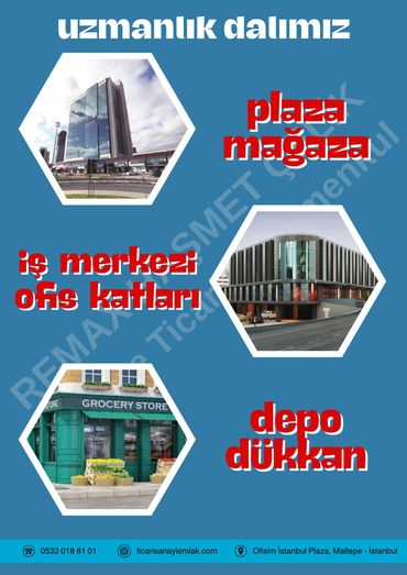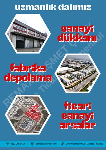 Satılık ve Kiralık; Fabrika, Depolama, İmalathane, Atölye, Dükkan, Mağaza, İş Hanı, Tower, Plaza, Komple Ticari Bina v.b. emlak ihtiyaçlarınızda profesyonel hizmet sunmak için bir tık kadar yakınınızdayız. Gayrimenkul Acentesi; Fabrika, Depo, Dükkan, Mağaza, Plaza, Ticari Arsa; Ticari Sanayi Emlak